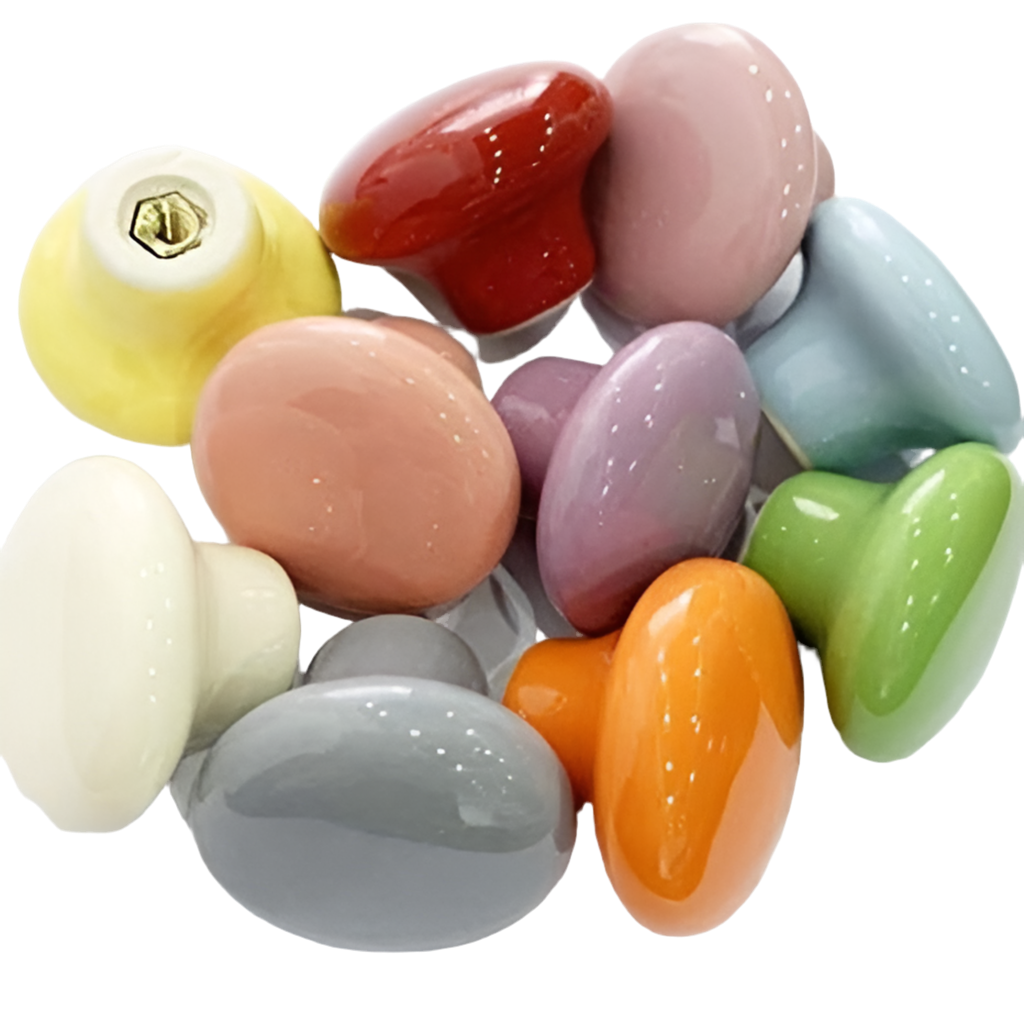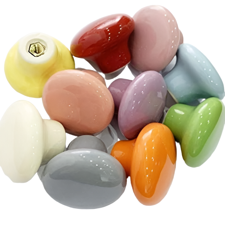 Bring farve og personlighed ind i hjemmet Vores møbelknopper i farvet keramik er den perfekte lille detalje, som løfter dine skuffer, skabe eller låger til et helt nyt niveau. I stedet for det klassiske greb får du her et stilfuldt og legende element, der kan skabe kontrast, harmoni eller bare et friskt pust i din indretning.