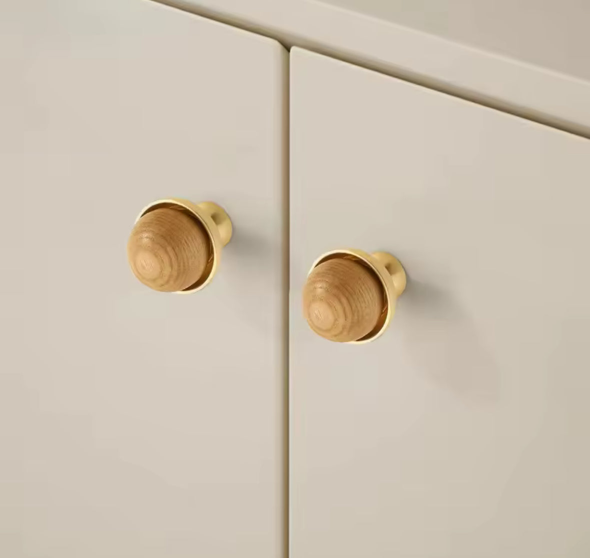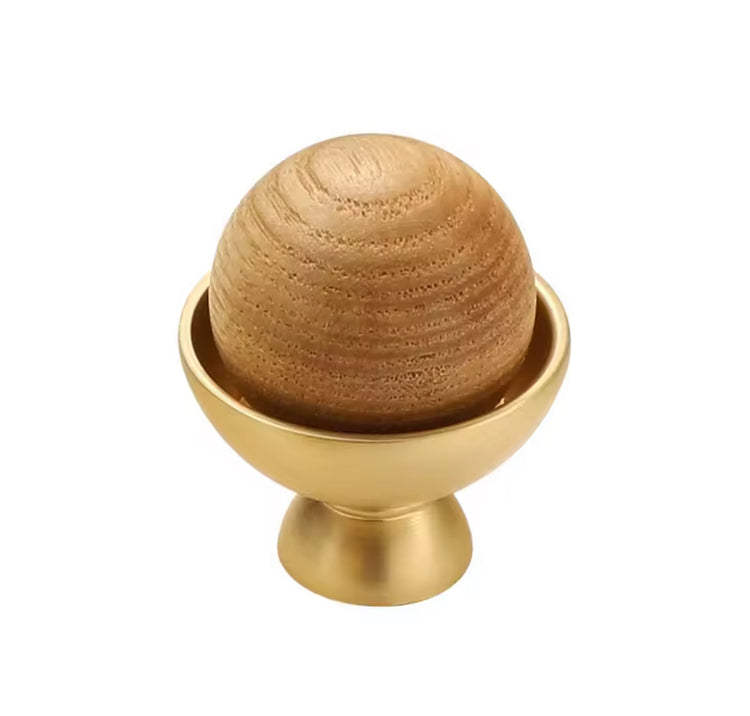 Giv dine møbler et løft med denne stilrene møbelknop, der kombinerer varm messing med naturligt egetræ. Knoppens enkle, kugleformede design forener klassisk håndværk med moderne minimalisme og passer perfekt til både køkkenlåger, kommoder og skabe.