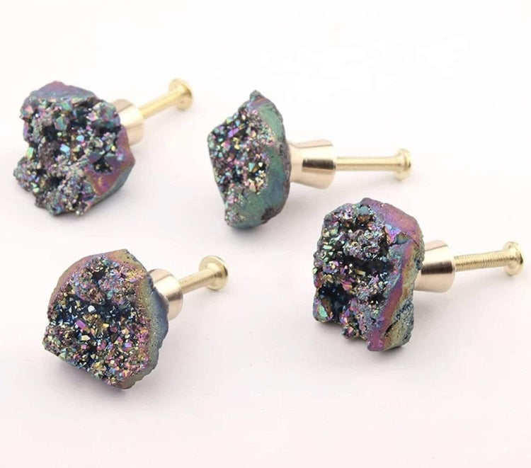 Knopperne er lavet af hvide natur krystaller, der efterfølgende er blevet behandlet og malet.