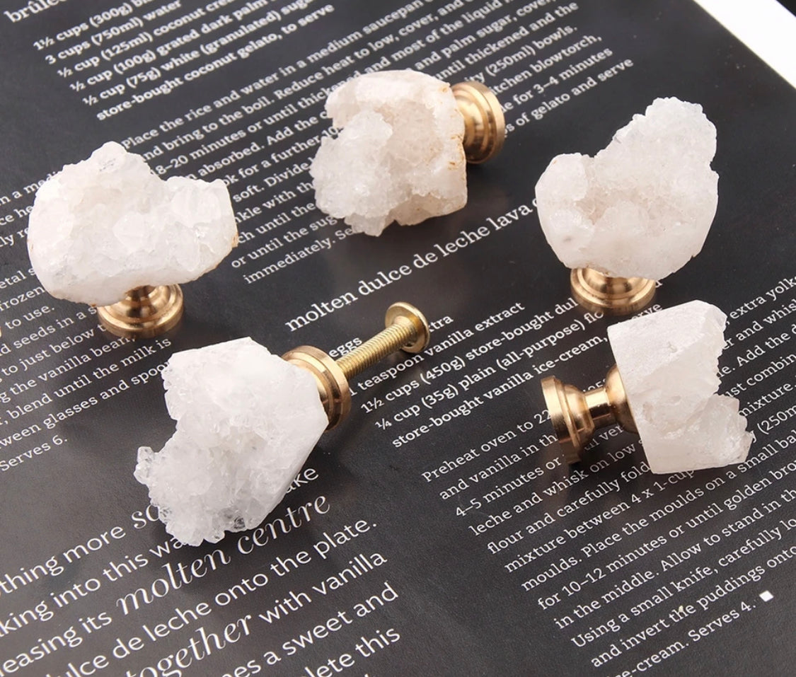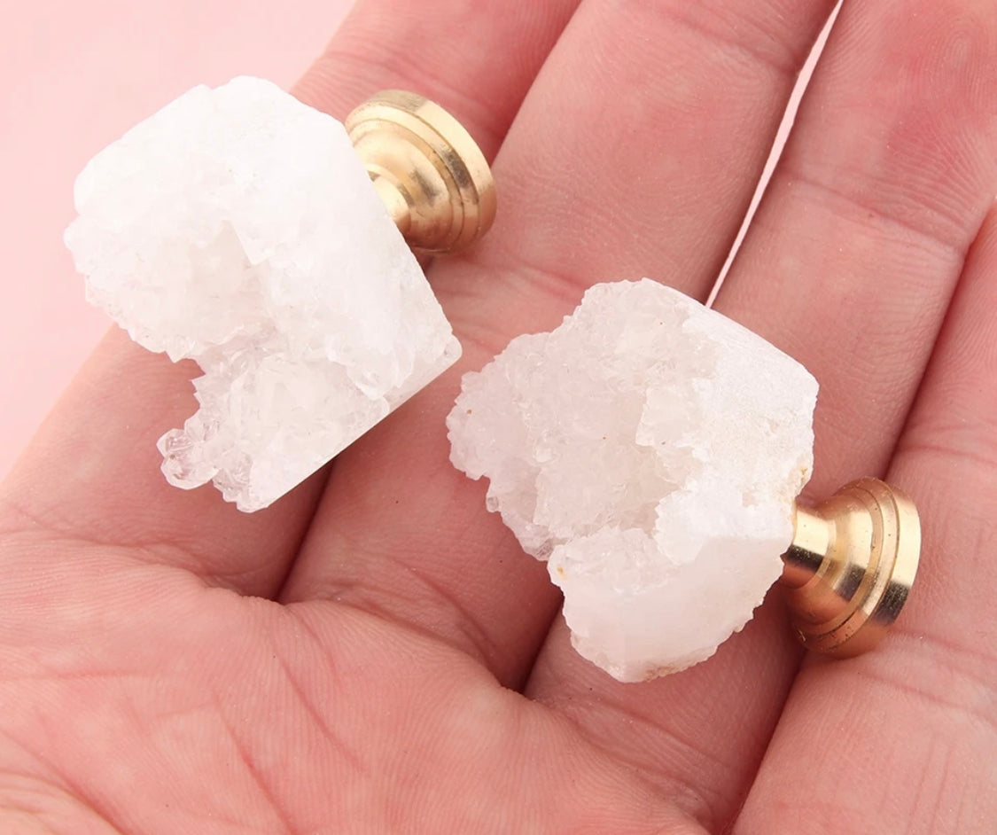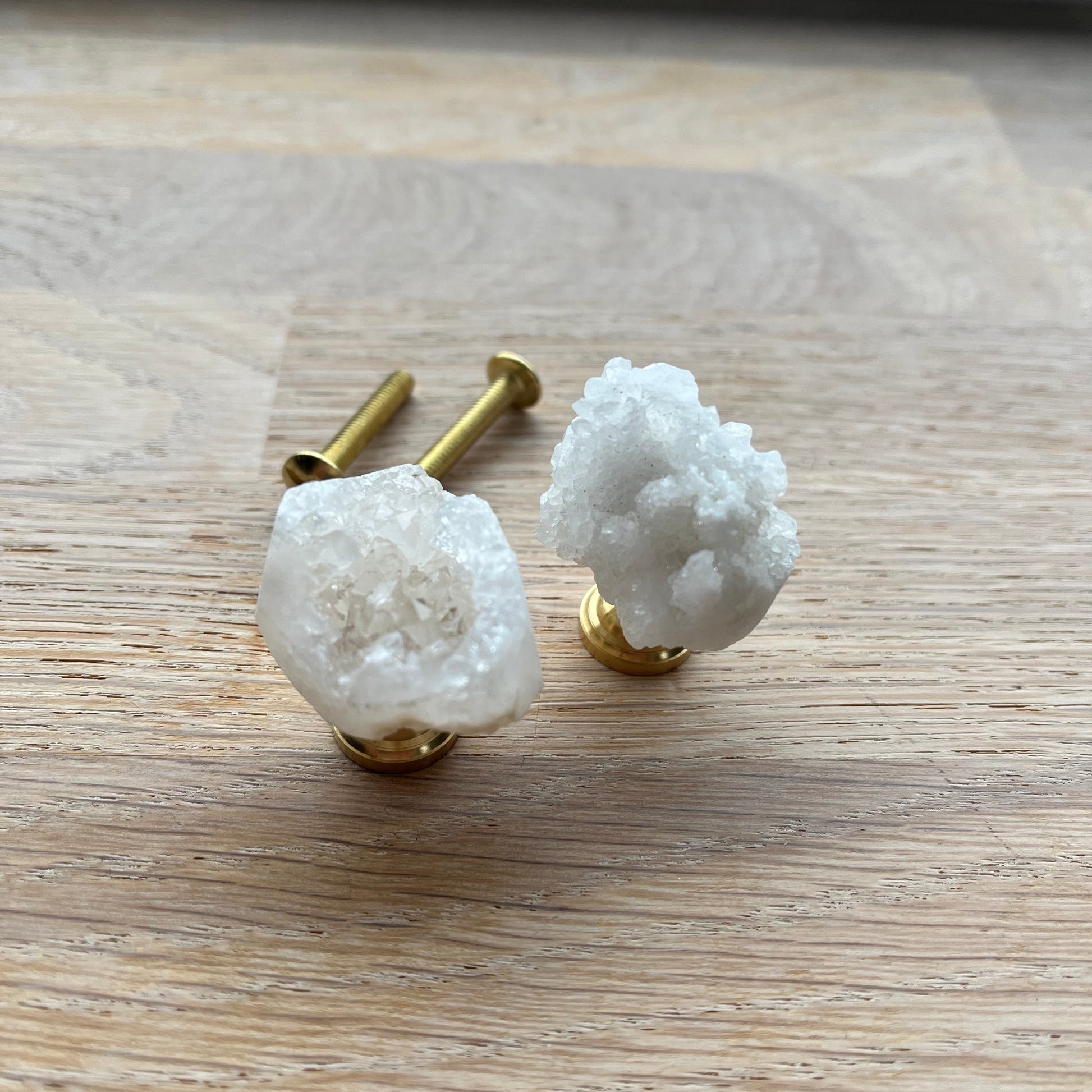 Rå hvid krystal møbelknop (Ø: 25-30 mm)