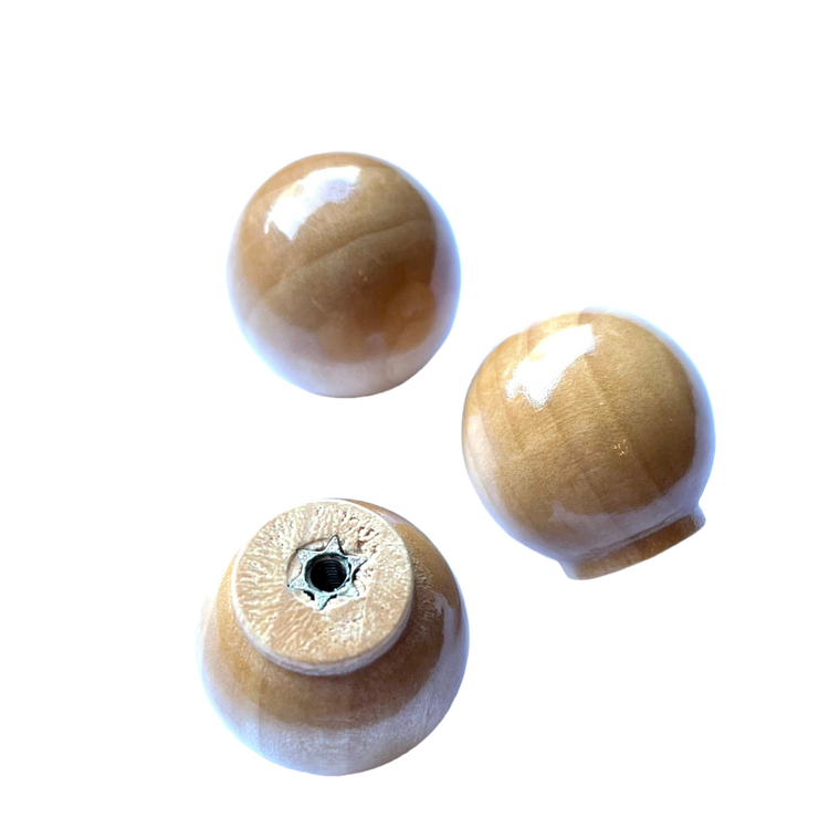 Møbelknop i lyst træ. Overfladen er lakeret, hvilket sikre lang levetid.