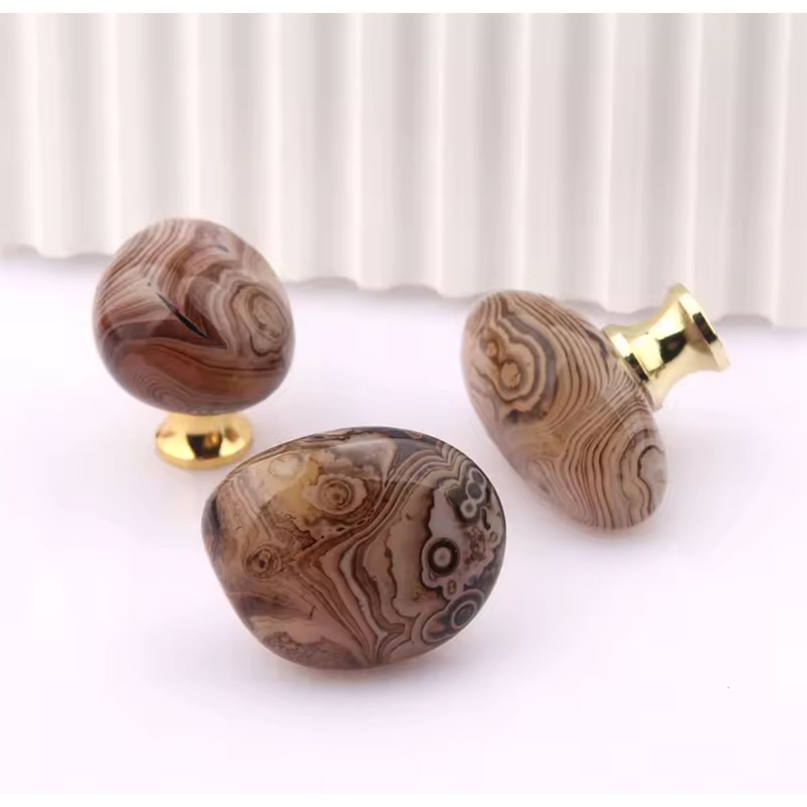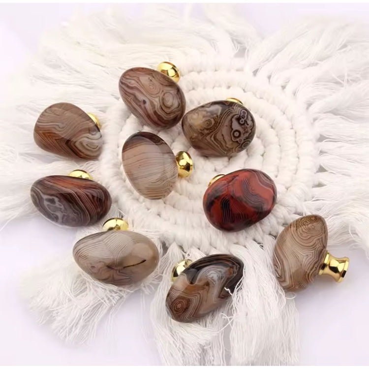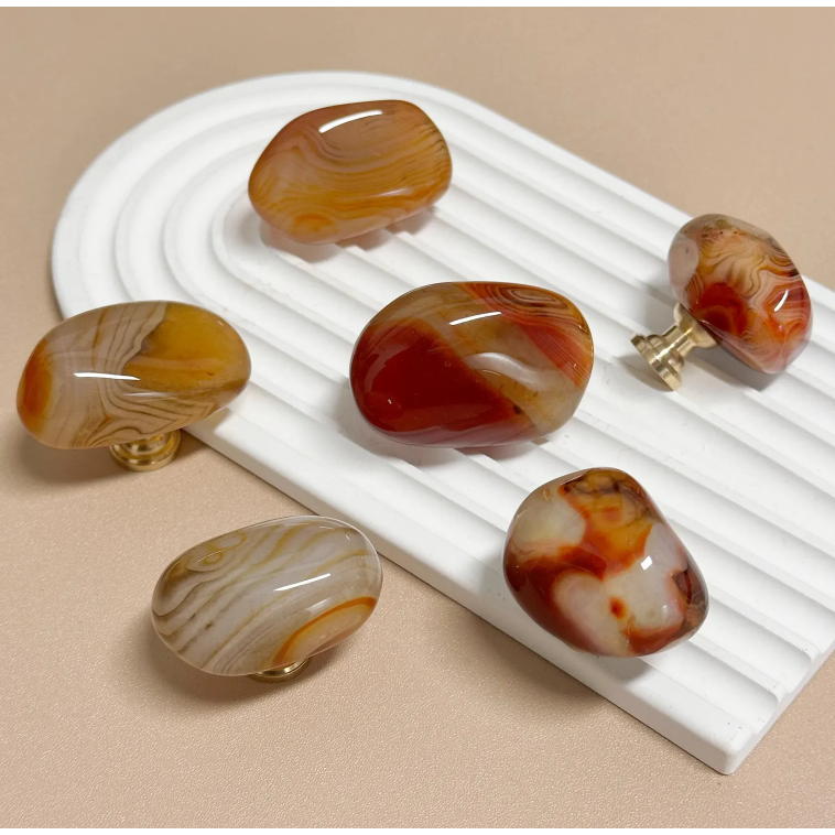 Smukke agat møbelknopper. Poleret. Alle er unikke, hvis du ønsker en bestemt farvetone eller andet, så skriv dit ønske i notesfeltet, så skal jeg se om jeg kan opfylde dit ønske.