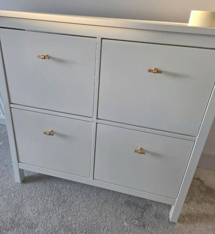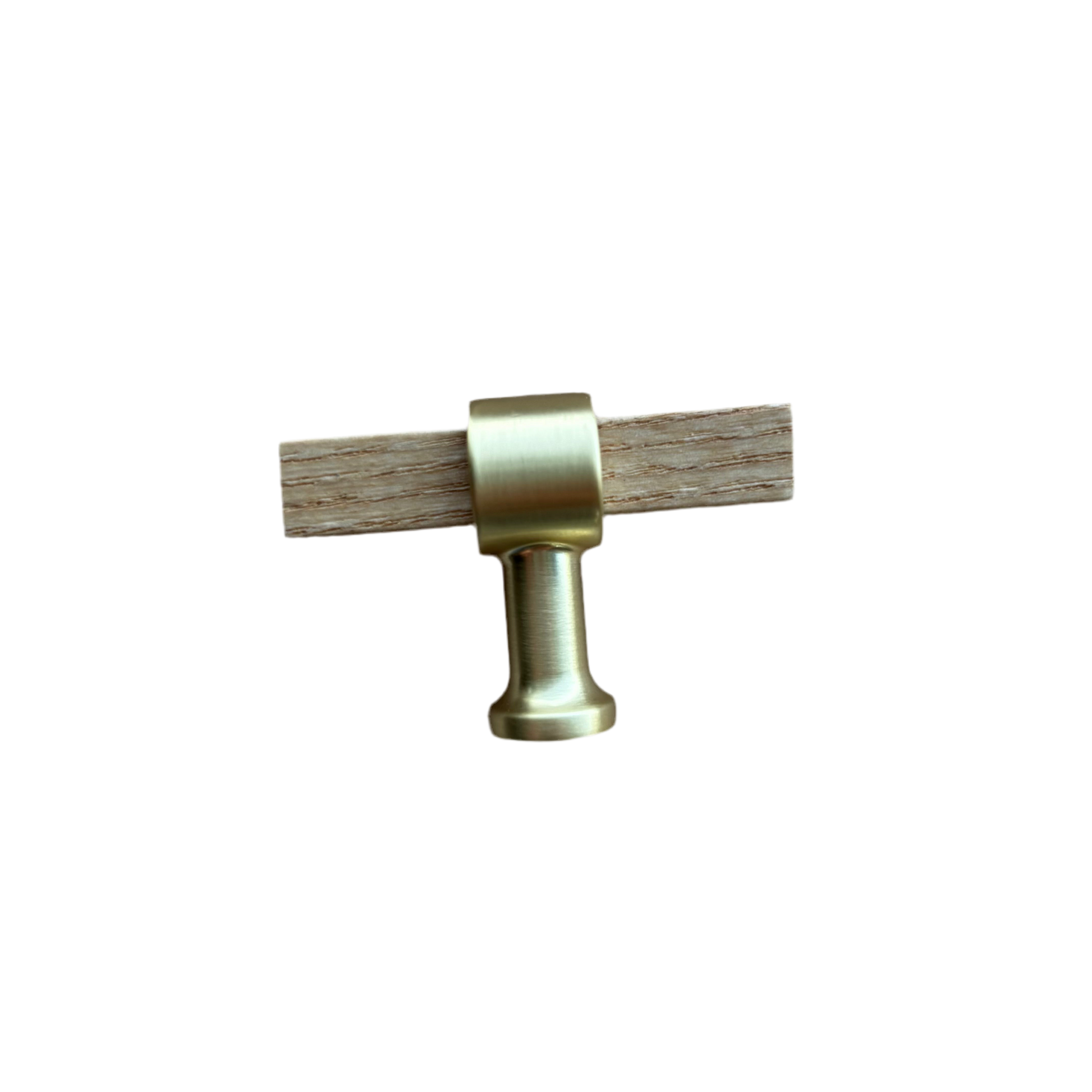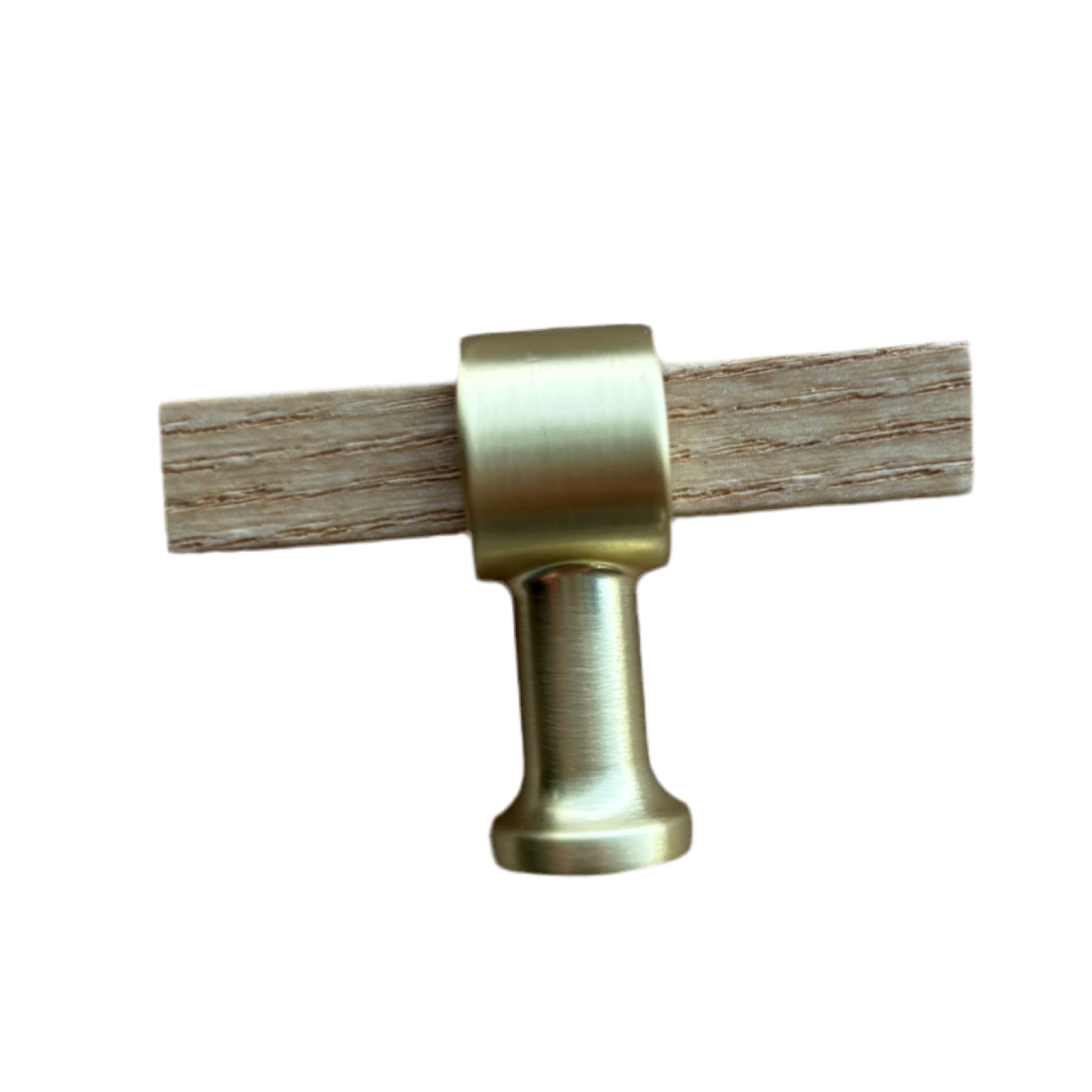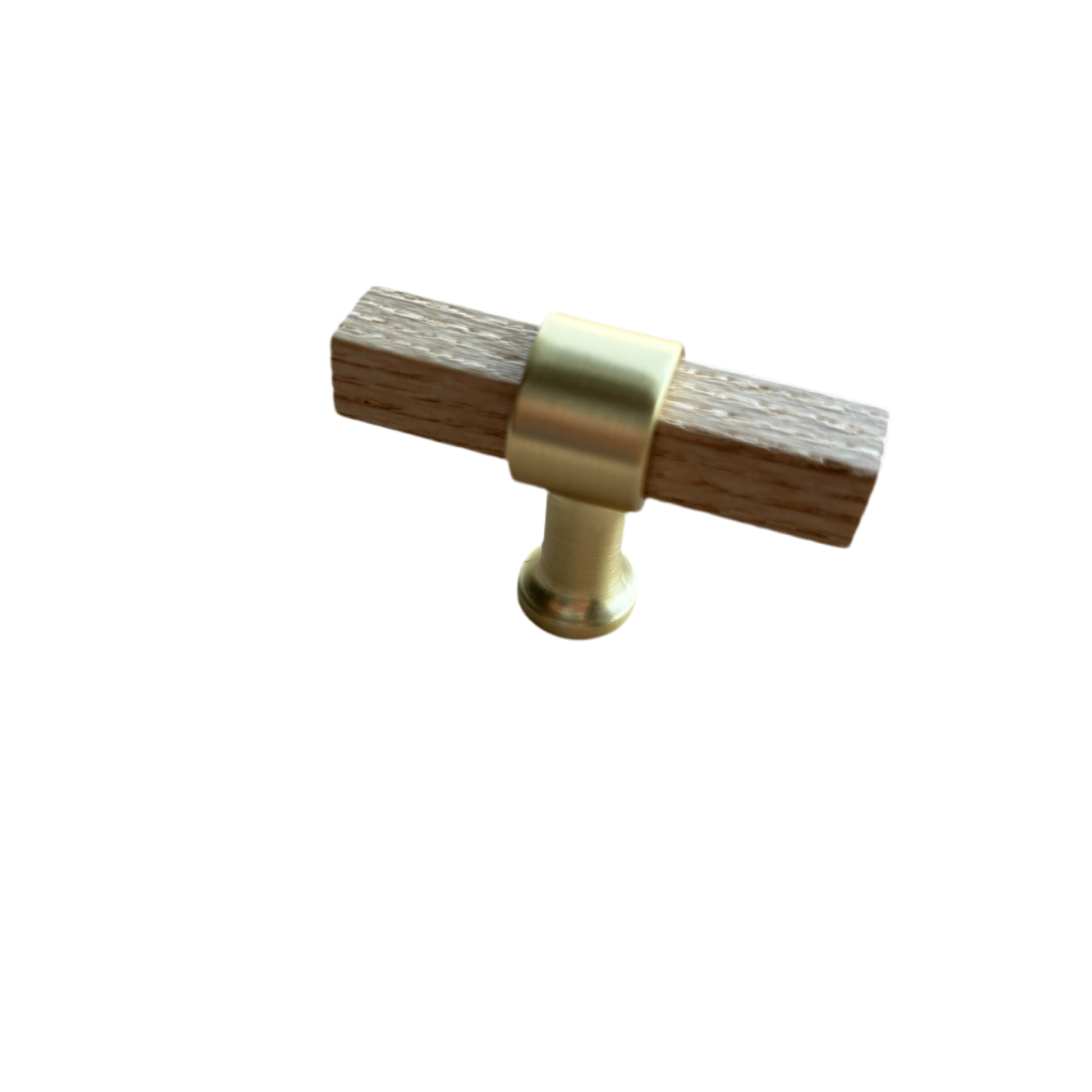 Med dette t-bar greb får du et skønt og praktisk greb i ask og børstet messing, som sætter prikken over i'et i dit køkken, på møblet eller på badeværelsesskabet.