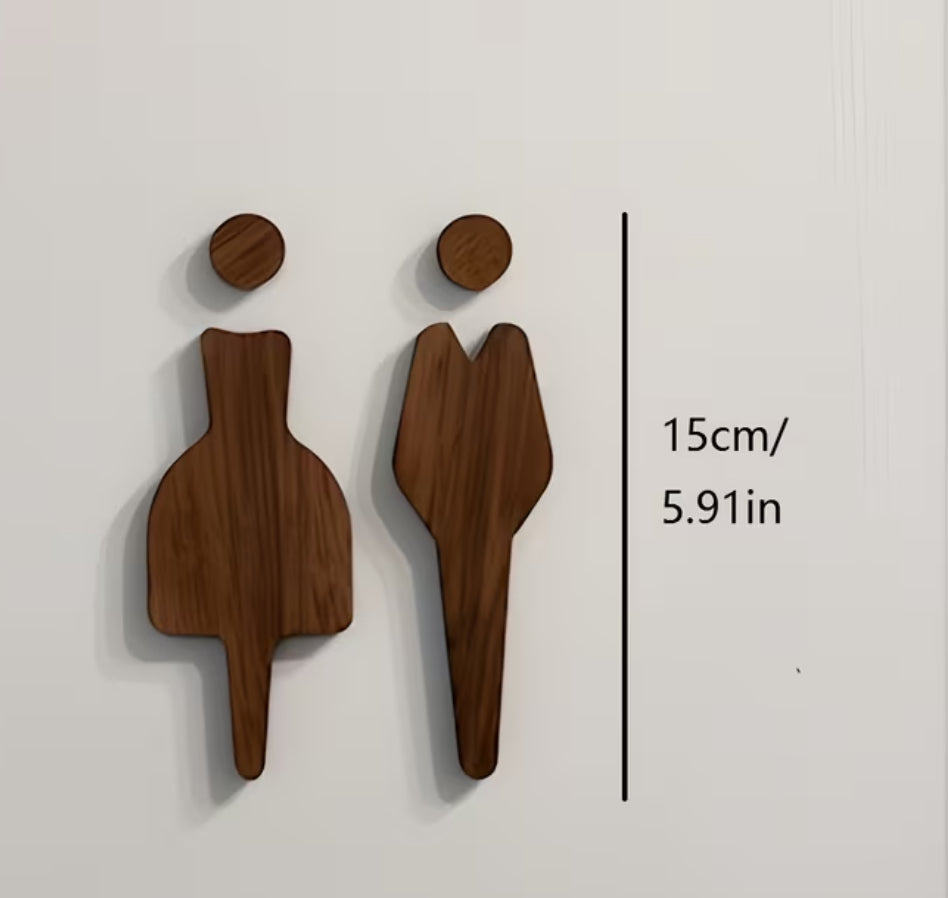 Fine toilteskilte. Et sæt består af en kvinde og en mandekrop med tilhørende knop-hoved.
